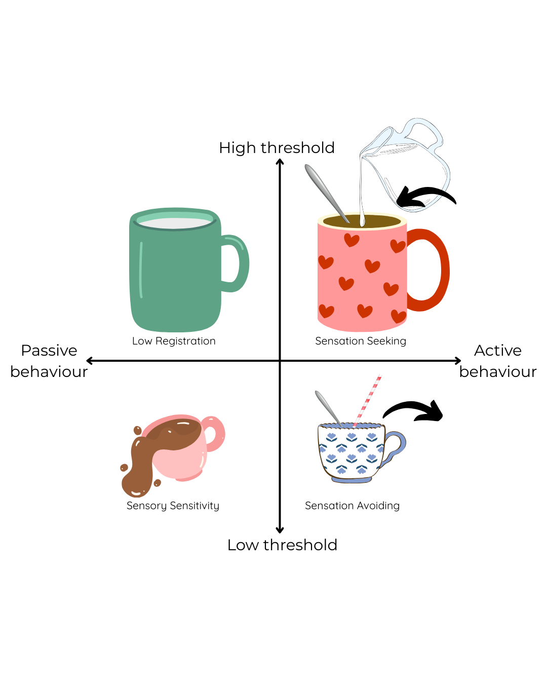 One way to think about sensory processing is using a sensory cup analogy (as shown in the image above).